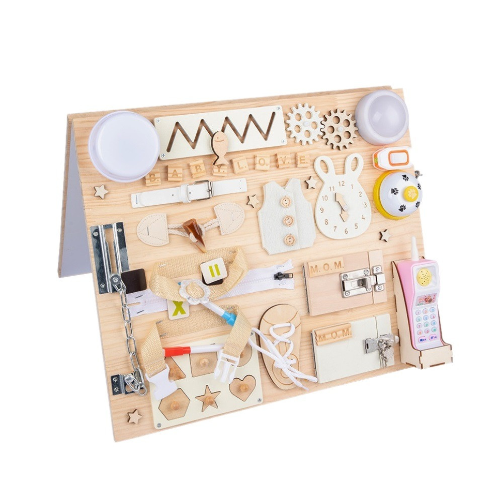 يتميز لوح منتسوري الحسي على توفير أنواع متعددة من الأنشطة يتعرف من خلالها على العالم من حوله ومهارة حل المشكلات